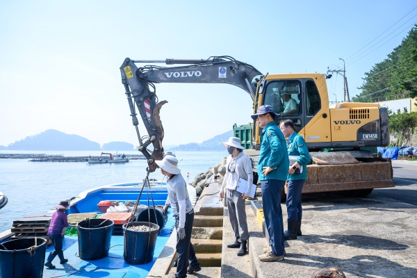 장충남 군수는 이날 미조면 소재 가두리 양식장을 방문해 폐사 어류 수거 및 처리 과정 등 고수온 대응 상황을 점검했다.