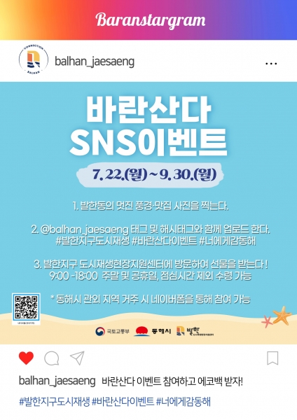 [아시아월드뉴스] 동해시는 오는 9월 30일까지 발한지구 도시재생 현장지원센터에서 발한동 일대 지역 활성화를 위한 특별 이벤트를 진행하고 있다고 밝혔다.