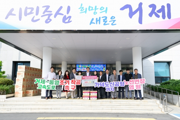 박종우 거제시장은 “거제~통영 고속도로가 개통되면 거제·통영·고성 3개 시·군뿐만 아니라, 영호남을 연결하는 남해안 핵심 교통 거점지역으로 발전해 획기적인 변화를 가져줄 것으로 기대된다”며 조기 착공될 수 있도록 3개 시·군민들의 힘을 끝까지 모아주실 것을 당부했다.