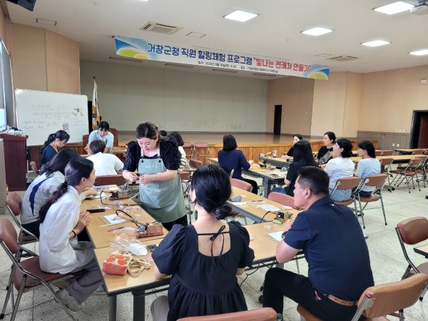 [아시아월드뉴스] 거창군은 지난 29일 종합사회복지관에서 직원들을 대상으로 힐링체험프로그램을 진행했다.