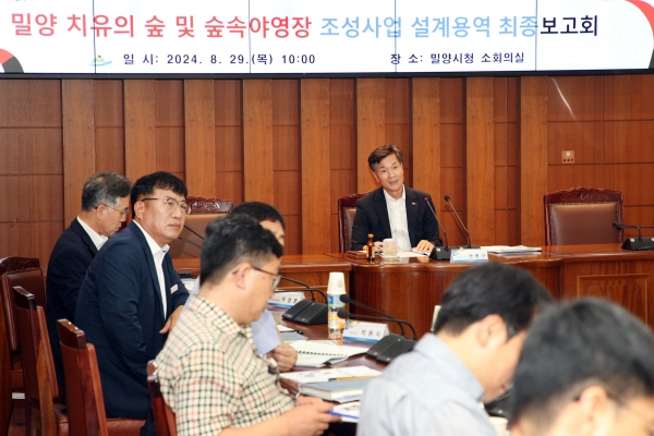 [아시아월드뉴스] 밀양시는 지난 29일 밀양시청 소회의실에서 ‘밀양 치유의 숲 및 숲속 야영장 조성사업 설계용역 최종보고회’를 개최했다고 밝혔다.