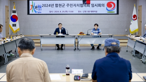[아시아월드뉴스] 합천군 주민자치협의회는 29일 군청 대회의실에서 김윤철 합천군수와 주민자치협의회 위원 등 30여명이 참석한 가운데 임시회의를 개최했다.