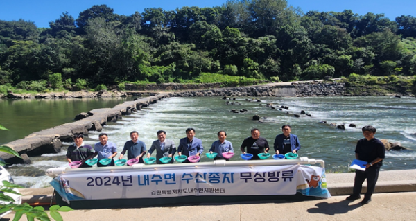 [아시아월드뉴스] 강원특별자치도 글로벌본부 해양수산국은 8월 30일 철원군 한탄강에 “기후 변화와 민물가마우지 토착화로 황폐화된 도내 내수면 생태계 보호와 어업인 소득 증대”를 위해 동자개 5만 마리를 방류했다“고 밝혔다.