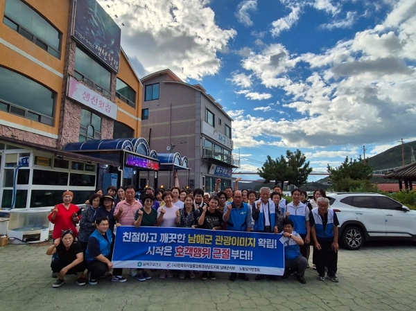 [아시아월드뉴스] 남해군 보건소는 지난 8월 29일 ‘호객행위 근절 및 관광지 친절 수용태세 확립’ 이라는 주제로 노량마을 영업주와 간담회를 개최하고 거리 캠페인을 실시했다.