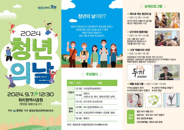 진병영 함양군수는 “올해 처음으로 개최하는 청년의 날 기념 행사는 함양군 청년정책네트워크 회원들이 주도적으로 참여하고 기획한 행사로 그 의미가 깊다”며 “많은 청년들과 주민들이 함께 즐기고 소통할 수 있는 기회가 되길 바란다”고 말했다.