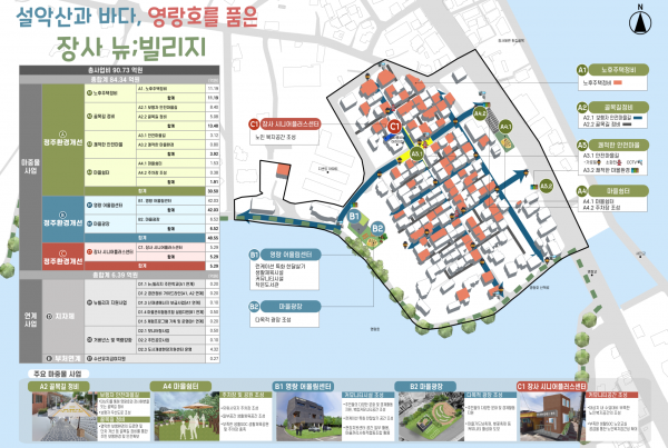 금번 공모에서 선정된 3개 지역은 ➊ 해일피해로 1969년 구호주택단지로 조성되고 연접된 군부대로 인해 개발에서 피해를 받은 속초시 장사동 새마을과 ➋ 산사태 피해 및 각종 재난으로부터 취약한 평창군 하리 안심마을 ➌ 관광중심 및 각종 산업육성 정책에서 소외된 고성군 죽왕면 오호리 감탄마을이 선정됐다.