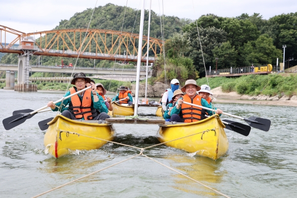 '부자뱃길투어'는 거부 탄생을 예고한 솥바위와 소원을 이룬다는 탑바위, 삼성그룹 창업주 이병철 회장 생가 등 부자 기운 넘치는 관광지 5곳을 문화해설사와 함께 무동력 배에 탑승해 8.5㎞ 구간을 1시간 동안 둘러보는 코스다.