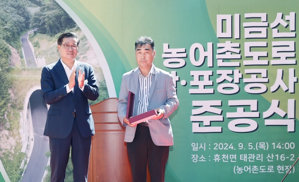 [아시아월드뉴스] 함양군은 9월 5일 오후 2시 휴천면 진관마을과 마상마을을 연결하는 미금선 농어촌도로 확포장공사 준공식을 개최했다.