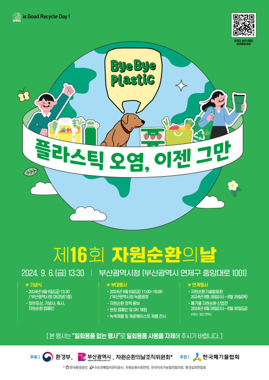 특히 부산시 '1회용품 없는 날 서약'과 생활 속 '자원순환 실천 서명 캠페인'도 함께 진행한다.