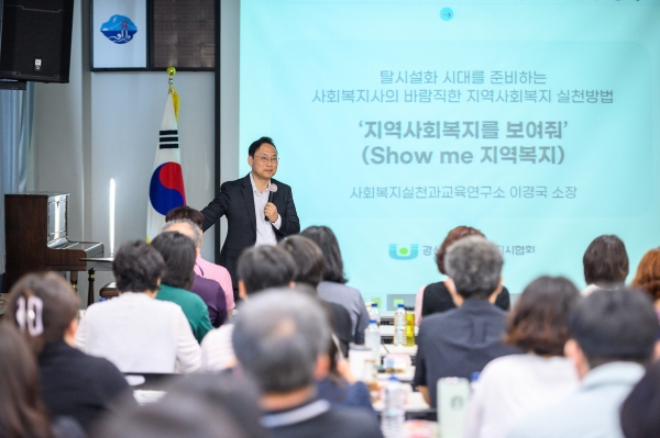 이번 교육에서는 사회복지실천과교육연구소 이경국 소장이 ‘탈시설화를 준비하는 사회복지사의 바람직한 지역복지실천방법’ 이라는 주제로 강의를 했다.