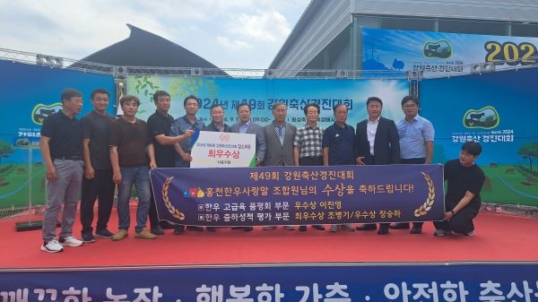 홍천군은 9월 5일 횡성축협 가축시장에서 열린 대회 시상식에서 고급육 품평회 부문 우수상, 출하 성적 분야, 암소품평회 송아지 부문 최우수상을 수상했다.