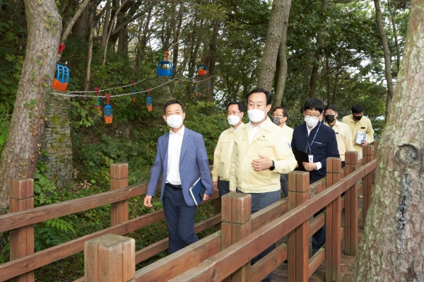 시는 우선 정비가 시급한 케이블카 상부역사 ~미륵산 정상 구간의 데크시설에 대한 현장조사 및 실시설계를 완료해 2024년 9월부터 12월까지 시설물 정비사업을 추진 중에 있다.