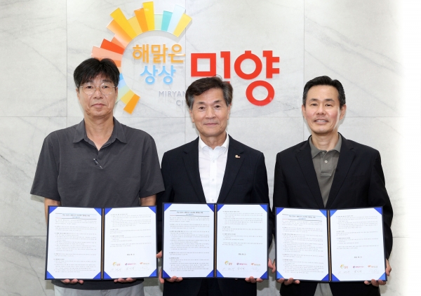 [아시아월드뉴스] 밀양시는 지난 10일 시청 시장실에서 사회공헌 네트워크 행복얼라이언스), 행복도시락 사회적협동조합과 지역 내 결식 우려 아동 40여명에게 1년간 10,400개의 도시락을 지원하는 ‘행복두끼 프로젝트’업무협약을 체결했다.