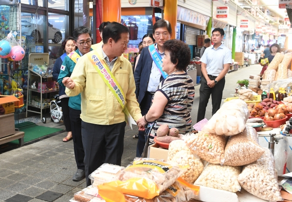 이날 캠페인은 전통시장 이용 장려, 물가안정 동참, 원산지 표시 및 가격표시제 준수와 화재예방을 중점적으로 홍보하며 시장 상인들을 격려하기 위해 진행됐다.