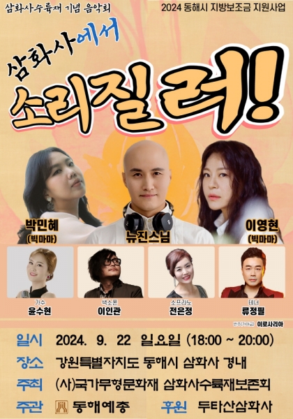 다음날인 9월 22일에는 삼화사수륙재보존회가 주최하고 동해예총이 주관하는 ‘삼화사에서 소리 질러’ 음악회가 삼화사 경내에서 오후 6시부터 진행된다.