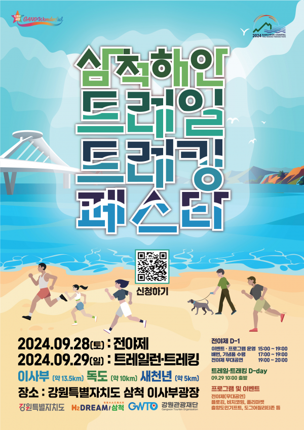 [아시아월드뉴스] ‘삼척 해안 트레일·트레킹 페스타’ 행사가 오는 9월 28일부터 29일까지이틀에 걸쳐 삼척시 이사부광장 일원에서 강원관광재단 주관으로 열린다.