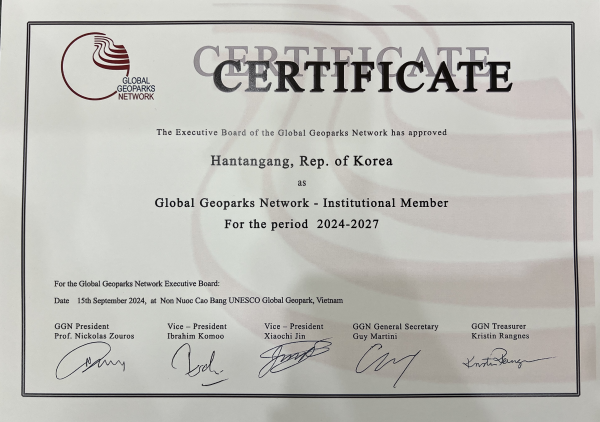 유네스코 세계지질공원 운영위원회는 작년 7월, 현장평가를 통해 한탄강 세계지질공원의 관리·운영 현황을 점검하고 유네스코 세계지질공원 최종 이사회에서 재지정이 유력함을 뜻하는 ‘그린 카드’를 부여한 데 이어 올해 9월, 베트남 카오방에서 열린 ‘아-태세계지질공원네트워크 심포지움’에서 재지정을 최종 확정하는 인증서를 수여했다.