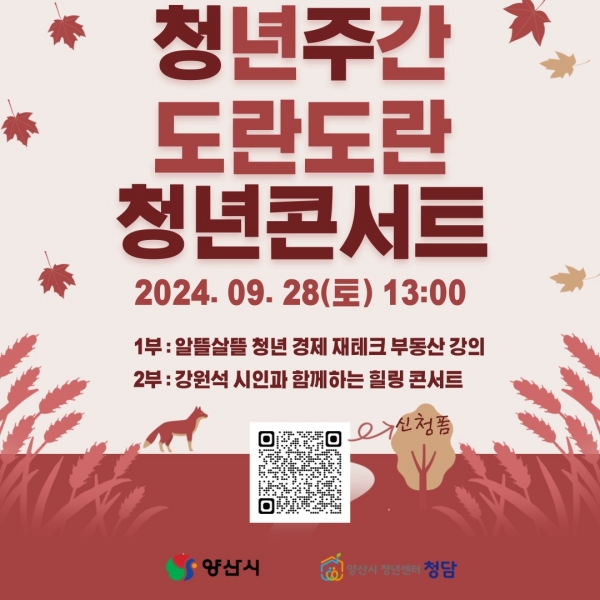 한편 9월 26일 오후 1시 국민체육센터 실내체육관에서 청년도전지원사업 참여자들이 펼치는 운동회 ‘우당탕탕 청도지’ 가 열린다.