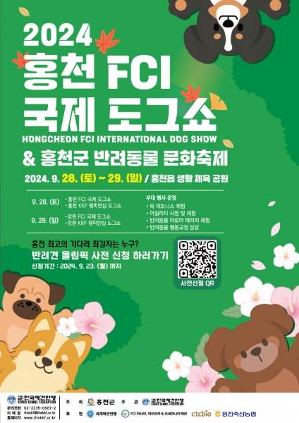홍천군이 주최하고 한국애견연맹이 주관하는 이번 축제는 ‘반려인의 열린 공간, 어울림의 도시 홍천’ 이라는 주제로 9월 28일부터 29일까지 홍천읍 생활체육공원에서 진행된다.