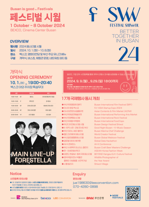 한편 페스티벌 시월 기간인 10월 1일부터 8일까지 8일간 벡스코 야외주차장이 융복합 거점 공간인 '시월 빌리지'로 운영된다.