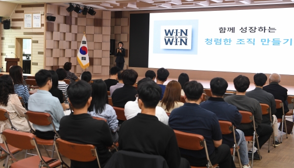 강사로 초빙된 박연정 국민권익위원회 청렴교육 전문강사는 ‘함께 성장하는 청렴한 조직 만들기’라는 주제로 교육을 진행했다.