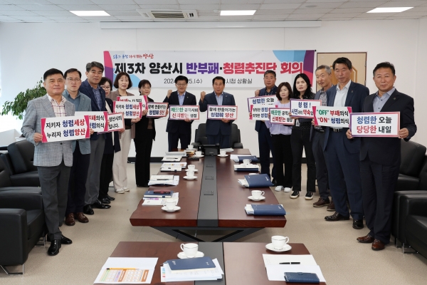특히 청렴 정책의 공유 및 점검, 부패 취약분야 개선책 발굴, 고위직 공직자의 청렴 결의 표명 등 청렴도 향상을 위한 회의를 지속적으로 개최해 양산시 청렴도 향상을 위한 노력을 실천적이고 행동적으로 추진하고 있다.