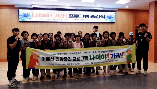 [아시아월드뉴스] 마산대학교 스포스산업육성사업단과 국민체력100 창원마산회원체력인증센터의 지원으로 12주간 실시한 ‘나이야 가라’ 프로그램의 종강식이 9월 24일 종합사회복지관 분관에서 수강생 20여명과 함께 진행했다.