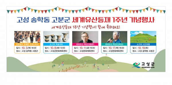 고성군은 “고성 송학동 고분군 세계유산 등재 1주년을 기념하는 이번 행사가 지역사회의 자부심을 높이고 고성지역의 고대사와 문화유산을 재조명하는 기회가 될 것으로 기대한다”며 군민 여러분의 많은 관심과 참여를 부탁했다.