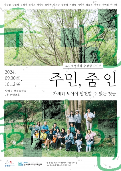 [아시아월드뉴스] 남해군 도시재생지원센터는 오는 30일부터 10월 12일까지 창생플랫폼 2층 콘텐츠 홀에서 사진전시 워크숍 작품전시회 ‘주민, 줌 인’을 개최한다고 밝혔다.