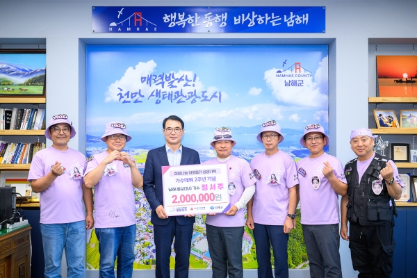 [아시아월드뉴스] 남해군 홍보대사 가수 정서주의 공식 팬클럽 ’ 동분서주‘ 회원들이 지난 27일 남해군청을 방문해 이웃돕기 성금 200만원을 기탁했다.