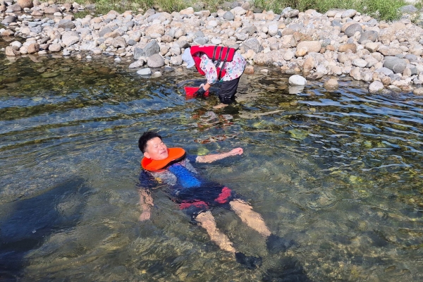 시연회에서는 수동 팽창 목걸이형, 수동 팽창 허리띠형, 목 장착형, 일반 구명조끼 등 종류별 안전장비를 동강마을 주민과 함께 착용하고 물속에서 다슬기 채취 시 불편함 정도와 익수 시 사고 예방 가능 여부 등을 점검했다.