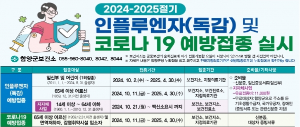 [아시아월드뉴스] 함양군은 오는 11일부터 내년 4월 30일까지 보건소, 보건지소 및 관내 위탁의료기관 13곳에서 코로나19 무료 예방접종을 전면 실시한다고 밝혔다.