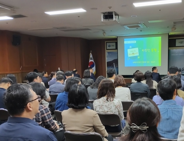 [아시아월드뉴스] 남해군은 지난 2일 장홍이 강사를 초빙해 종합사회복지관 다목적홀에서 직원 100명을 대상으로 직장 내 장애인식개선교육을 실시했다.