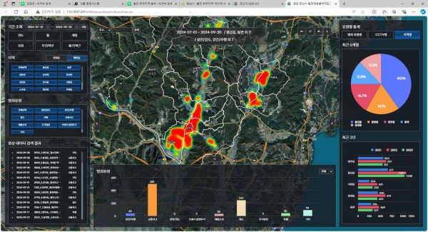 분석된 빅데이터는 지도기반으로 표출돼 시각적으로 쉽게 파악할 수 있으며 이를 활용해 관제요원 1인당 800여대로 배정된 관제업무를 시의적절하게 분배함으로써 관제효율을 높힐 수 있고 또한 특정조건의 범죄 발생빈도가 높은 지역과 시간대 등을 예측해 집중관제함으로써 효과적인 ‘사이버 예찰’ 기능도 겸하게 됐다.