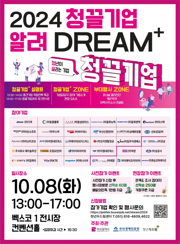 오는 10월 24일에 열리는 '2024년 부산 잡 페스티벌'에 참여해 구직자들을 대상으로 현장 면접을 통한 직접 채용까지 이뤄질 예정으로 이번 행사가 마중물 역할을 톡톡히 할 것으로 기대된다.