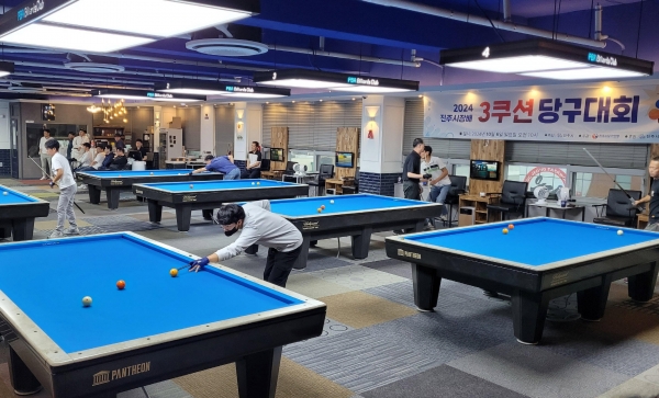 [아시아월드뉴스] ‘2024년 진주시장배 3쿠션 당구대회’ 가 지난 6일 350여명의 선수 및 관계자들이 참가한 가운데 진주시 관내 당구클럽 7개소에서 성황리에 개최됐다.
