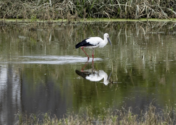 지난 9월 ‘백년 만에 피는 꽃’ 이라는 별명을 가진 멸종위기종 2급 야생식물인 가시연꽃이 발견된 곳에서 황새가 먹이활동을 하고 있어 눈길을 끌고 있다.