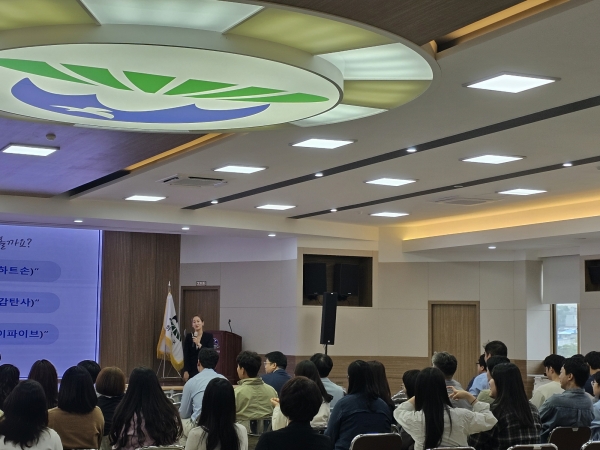 이날 교육은 인사혁신처 적극행정 전문 강사로 활동 중인 이승은 강사가 맡았으며 ‘나의 행복을 높이는 비밀 적극행정’ 이라는 주제로 진행됐다.