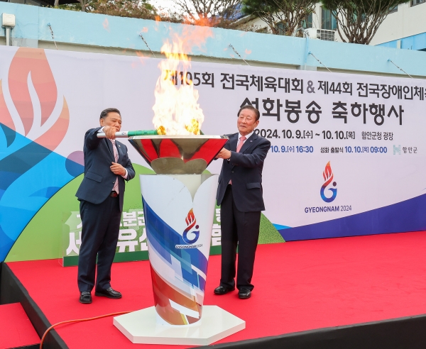 [아시아월드뉴스] 함안군은 지난 9일과 10일 군청 광장에서 ‘제105회 전국체육대회’ 및 ‘제44회 전국장애인체육대회’의 성공적인 개최를 기원하기 위한 성화봉송 안치식과 출발식을 진행했다.
