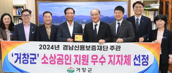 [아시아월드뉴스] 거창군은 10일 소상공인 친화정책을 지속적으로 펼친 공로를 인정받아 경남신용보증재단으로부터 2024년 ‘소상공인 지원 우수 지자체’로 선정돼 감사패를 받았다고 밝혔다.