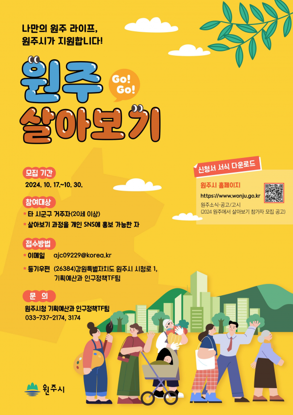 원강수 원주시장은 “이번 사업이 원주에 관심이 있는 잠재적 전입자들에게 우리 지역의 다양한 매력을 몸소 체험할 기회를 제공해, 지역 경제 활성화와 인구 유입에 이바지할 것으로 기대한다”고 말했다.