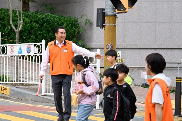 [아시아월드뉴스] “시장님, 지켜주셔서 감사한다”박종우 거제시장이 17일 이른 아침, 학생들의 안전한 통학을 위해 상동초 횡단보도 앞에 섰다.