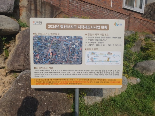 [아시아월드뉴스] 합천군은 2025년도 지적재조사사업을 추진하기 위해 합천18지구 등 7개 지구를 선정해 실시계획을 수립하고 주민들이 확인할 수 있도록 읍·면 게시판과 홈페이지에 그 내용을 게시했다.