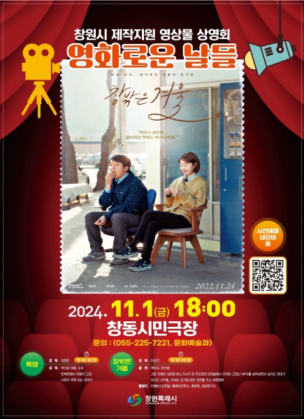 [아시아월드뉴스] 창원특례시는 오는 11월 1일 오후 6시 마산합포구 창동 시민극장에서 창원시가 제작 지원한 영화를 시민들에게 소개하는 ‘영화로운 날들’ 두번째 상영회를 개최한다.