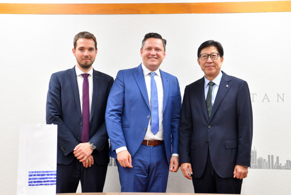 이날 접견은 부산 미래항공 클러스터 육성의 성공적인 추진을 위해 마련됐으며 박형준 시장, 마크 페트 대표, 정현보 대한항공 항공우주사업본부 상무, 김형균 부산테크노파크 원장이 참석했다.