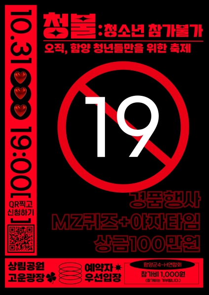 [아시아월드뉴스] 함양군 4-H연합회는 오는 10월 31일 저녁 7시 상림공원 고운광장에서 ‘오직 함양 청년들만을 위한 축제’를 개최한다.
