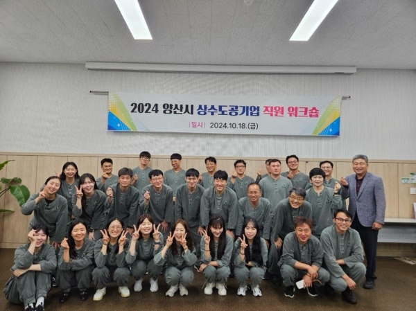 [아시아월드뉴스] 양산시는 지난 18일 민원 필수요원을 제외한 수도과, 정수과 직원 60명을 대상으로 양산에 위치한 ‘숲애서’에서 상수도 직원 역량강화 워크숍을 실시했다.