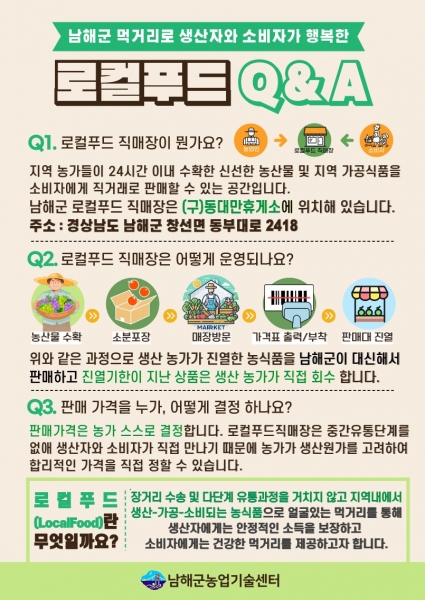 로컬푸드의 생산, 유통, 품질 관리 등 전반적인 내용이 다루어지며 주민들이 직접 직매장 운영에 참여할 수 있도록 찾아가는 교육을 지원할 예정이다.