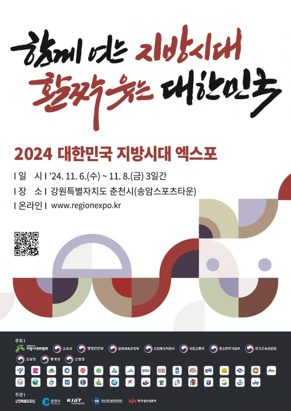 [아시아월드뉴스] 강원특별자치도는 11월 6일부터 11월 8일까지 3일간 강원특별자치도 춘천시 송암스포츠타운에서 ‘함께 여는 지방시대, 활짝 웃는 대한민국’ 이라는 슬로건 아래 ‘2024 대한민국 지방시대 엑스포’를 개최한다고 밝혔다.