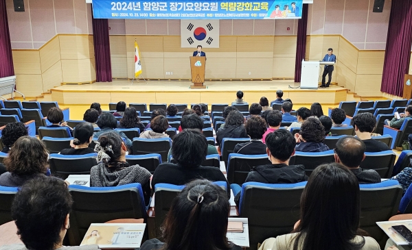 [아시아월드뉴스] 함양군은 10월 23일 오후 2시 농업기술센터 농업인교육관에서 노인복지시설 및 장기요양기관에 종사하는 사회복지사, 요양보호사, 간호사 등 150여명이 참석한 가운데 ‘장기요양요원 역량 강화교육’을 실시했다.